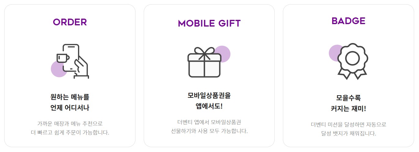 | 주문 방식 | 더벤티 자체 앱을 통한 배달 주문 |