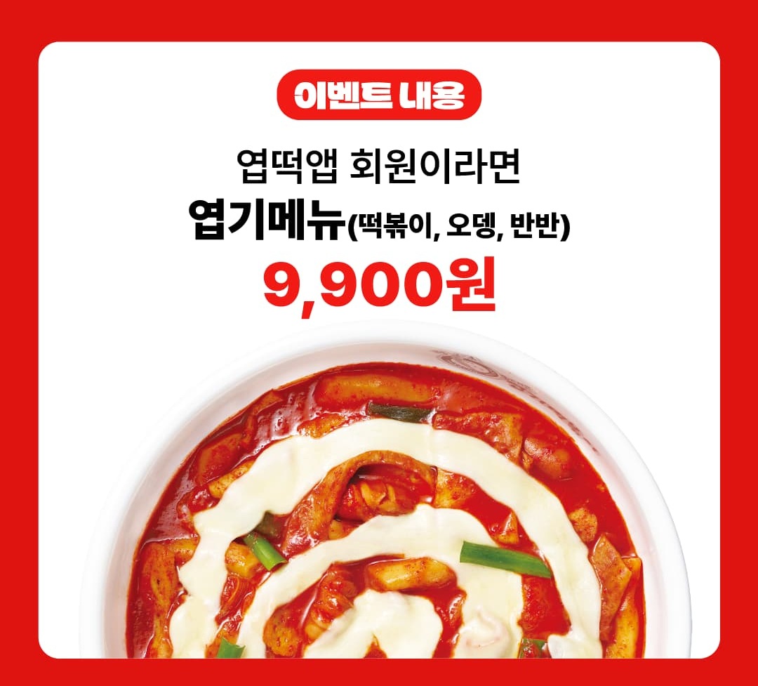 - 타 배달앱 주문 시 할인 불가 - 반드시 엽떡앱 사용
