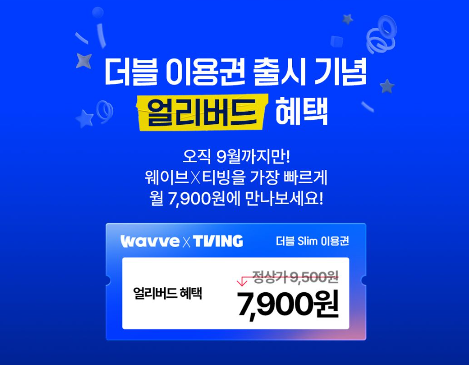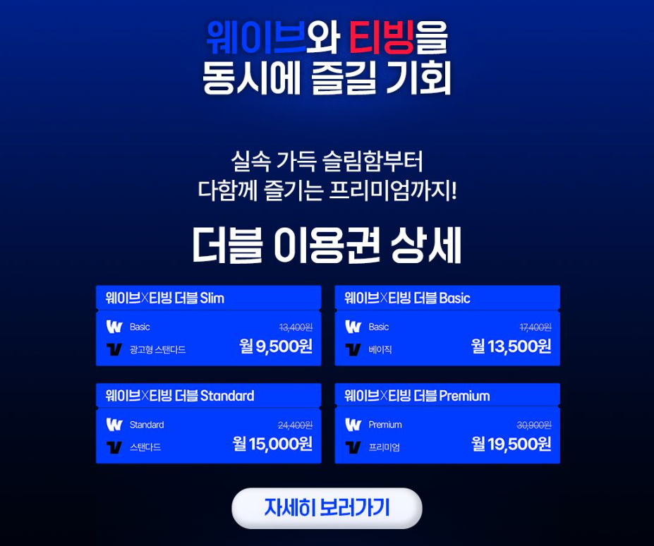 OTT 시장의 패러다임을 바꾼 ‘더블 이용권’은 웨이브와 티빙을 한 번에, 한 번의 결제로 모두 즐길 수 있는 초특급 패키지입니다.