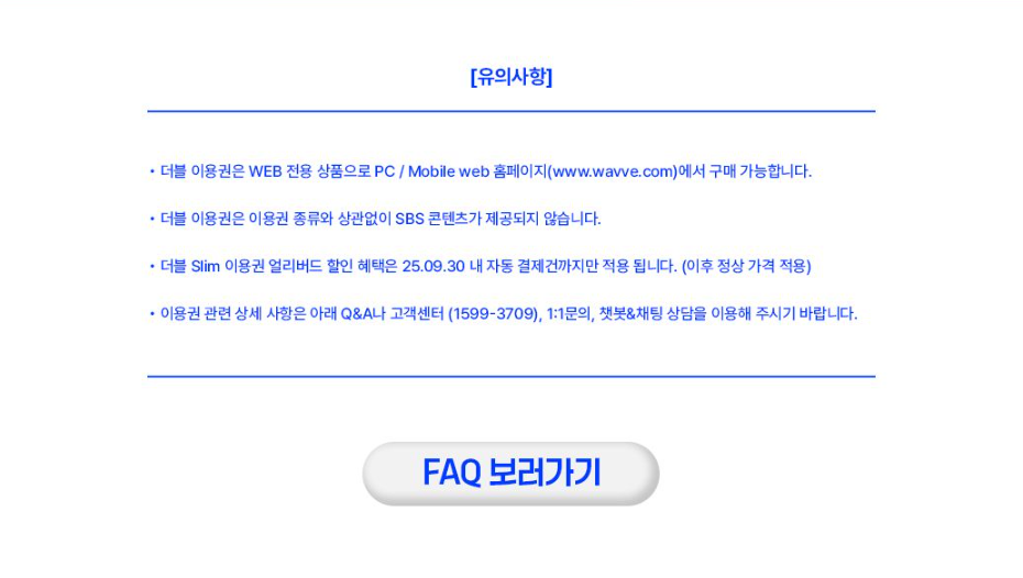 결제 완료 후 두 플랫폼 모두에서 동일하게 로그인해 이용하면 되며, 일부 SBS 콘텐츠는 시청에 제한이 있을 수 있습니다.