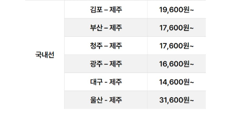 노선별 최저가 정보