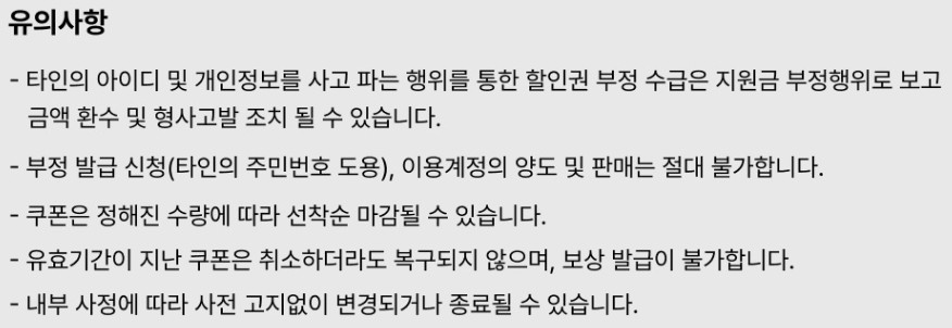 - 타 쿠폰과 중복 불가(일부 카드사/조기할인 제외)