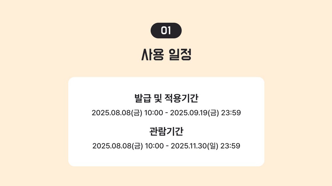 발급·적용기간: 2025년 8월 8일(금) 10:00 ~ 2025년 9월 19일(금) 23:59