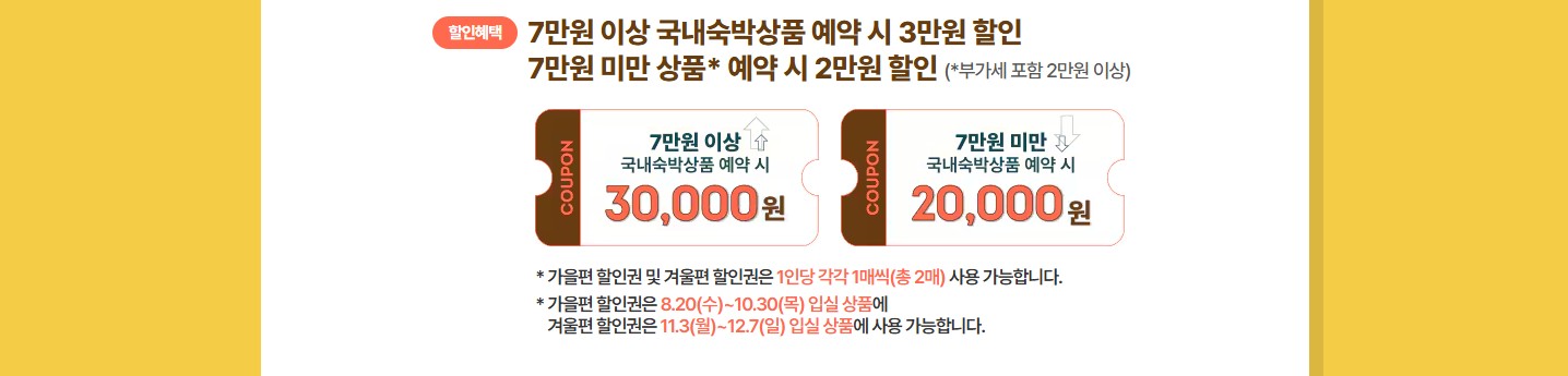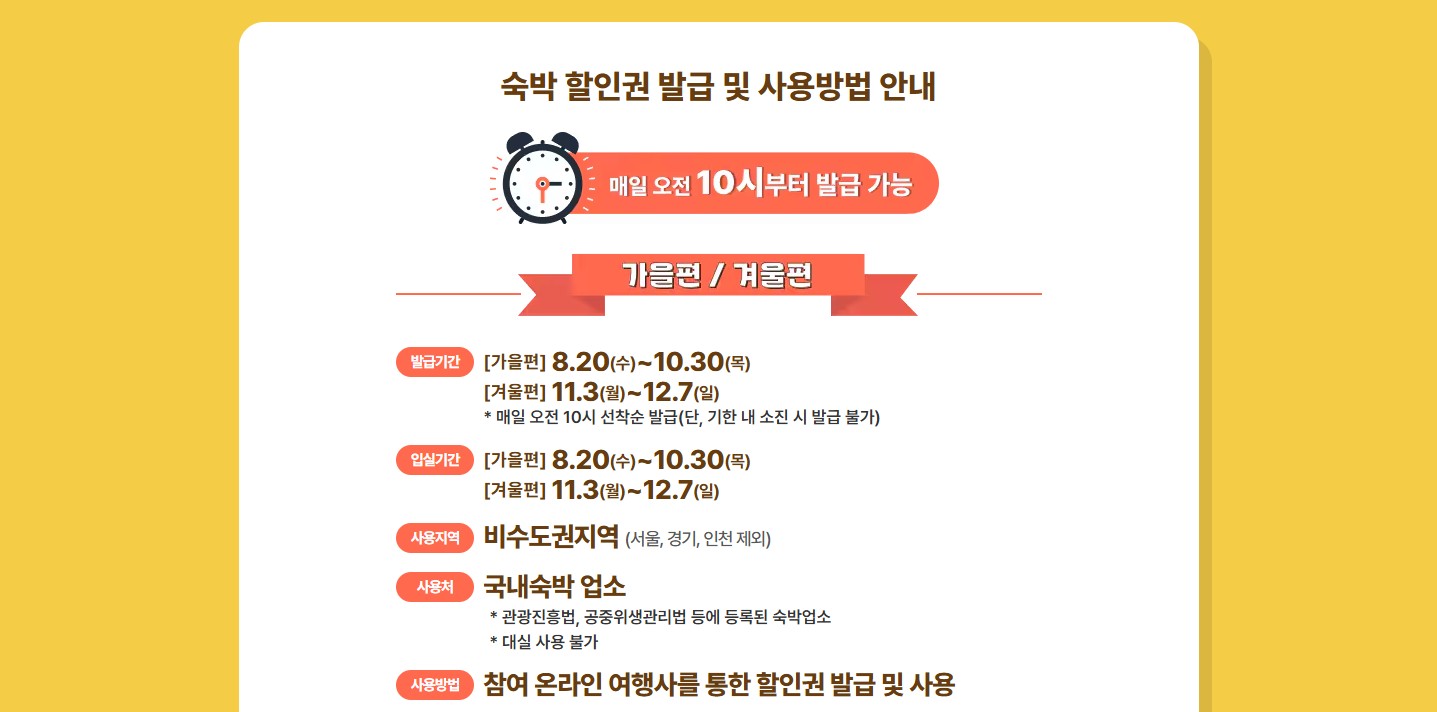 매일 오전 10시, 단 1분이 늦어도 혜택을 놓칠 수 있으니 지금 바로 숙소부터 예약하고, 가을과 겨울을 특별하게 만들어보세요.